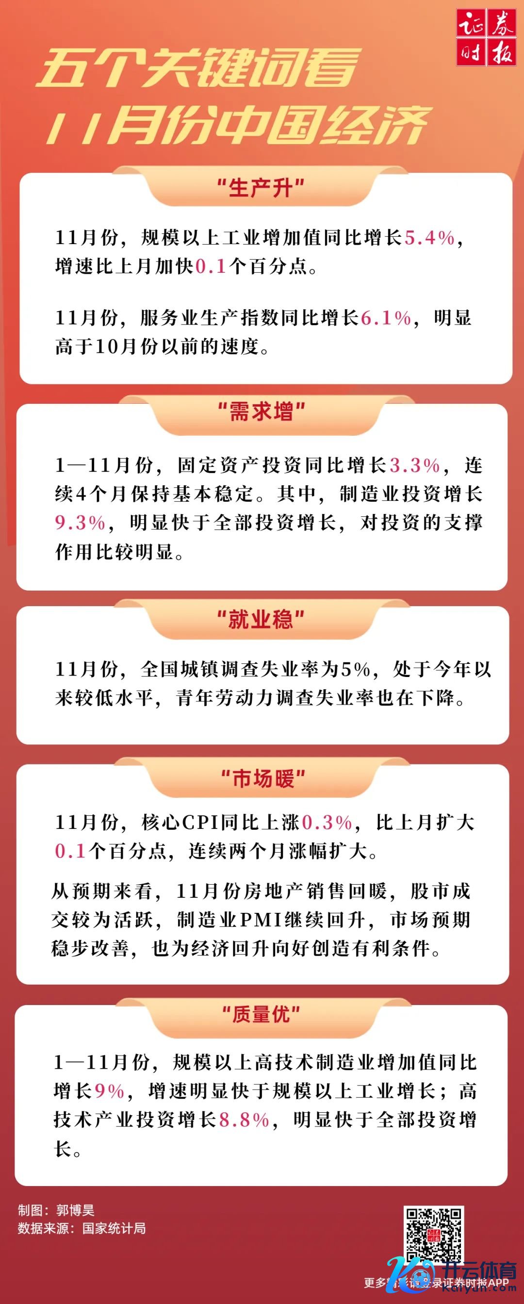 鸠合此前如故公布的食粮出产、货品收支口、寰球住户坑害价钱(CPI)和寰球工业出产者出厂价钱(PPI)数据等,国度统计局新闻发言东谈主、国民经济综合统计司认真东谈主付凌晖默示,11月出产较快增长,需求赓续扩大,服务物价总体相识,楼市和股市趋于活跃,阛阓预期握续改善,新质出产力稳步发展,经济运转延续回升态势。