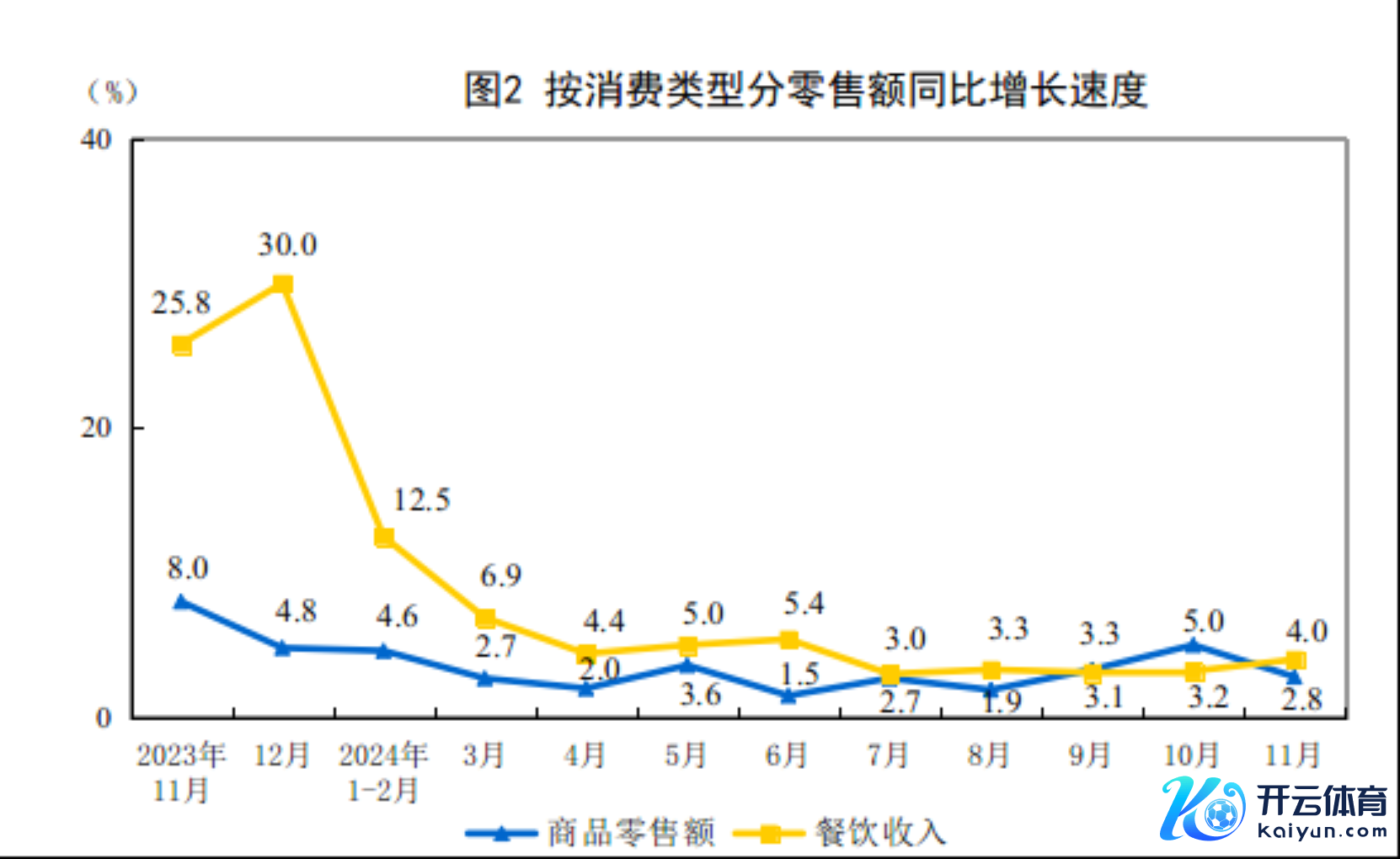 按耗尽类型分,11月份,商品零卖额37961亿元,同比增长2.8%;餐饮收入5802亿元,增长4.0%。1—11月份,商品零卖额392554亿元,增长3.2%;餐饮收入50169亿元,增长5.7%。