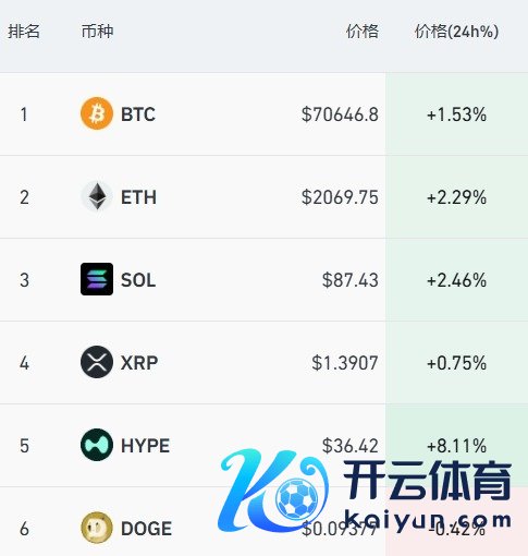 加密货币主要币种普涨,比特币涨超1.5%,重返7万好意思元。昔时24小时,全商场超9万东说念主爆仓。