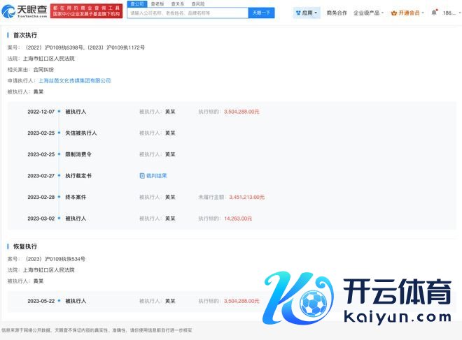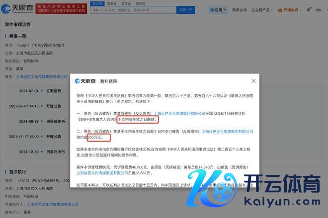 天眼查法律诉讼信息泄露,黄婷婷与上海丝芭文化传媒集团有限公司曾存在条约纠纷。裁判成果泄露,原告黄婷婷与被告上海丝芭文化传媒集团有限公司于2013年8月16日执意的《SNH48专属艺东说念主合约》于本判决获胜之日废除;原告黄婷婷支付被告上海丝芭文化传媒集团有限公司背信金350万元等。值得慎重的是,黄婷婷曾因此案被屡次奉行。