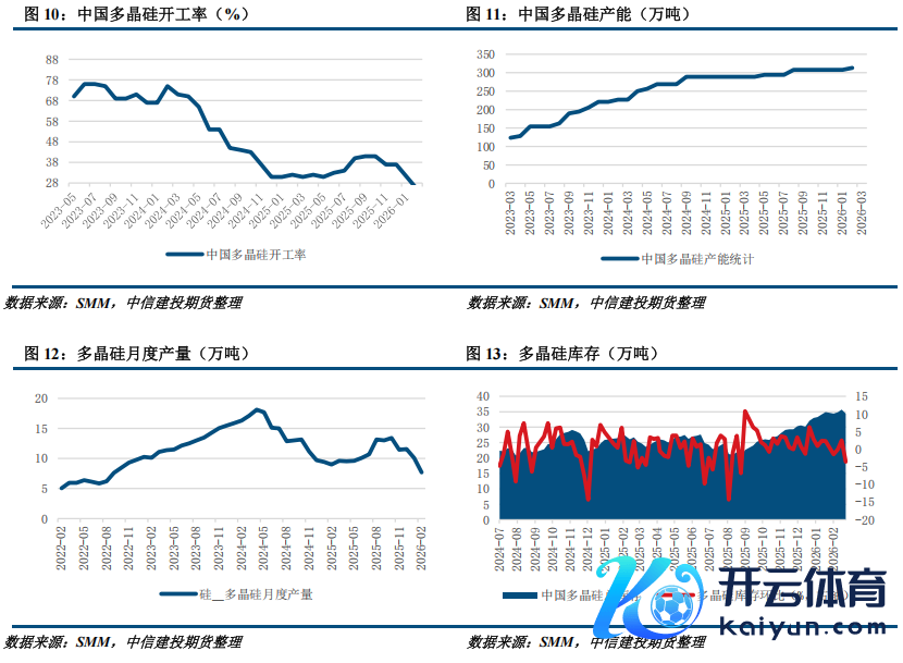 多晶硅期货价钱破位下落,咱们测算期货价钱或已跌破主流企业坐褥资本,实质是阛阓对后市需求悲不雅。一方面,卑劣武艺开工保管低位,4月1日起光伏等出口退税将取消,需求或有边缘恶化的趋势;另一方面,硅料厂高库存压力隐讳,咱们测算现在全行业库存水位在快要6个月,其中硅料厂库存快要4个月,受此影响硅料厂多以廉价促成交。在弱需求与高库存压制下,部分硅料厂近期或有复产可能,进一步打压阛阓形状。