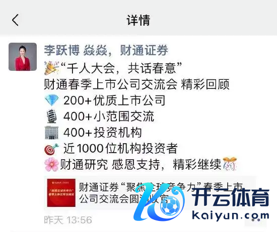 但就在市集传出李跃博去职音讯的前一天,李跃博的一又友圈还在共享财通证券2024年春季上市公司疏通会音讯。