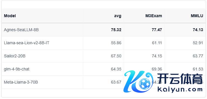 在讲话模子方面,Agnes针对我方的主推市集东南亚地区,推出了8B参数的东南亚小语种模子Agnes-SeaLLM,当今已成为该地区小语种清楚与生成任务SOTA模子。