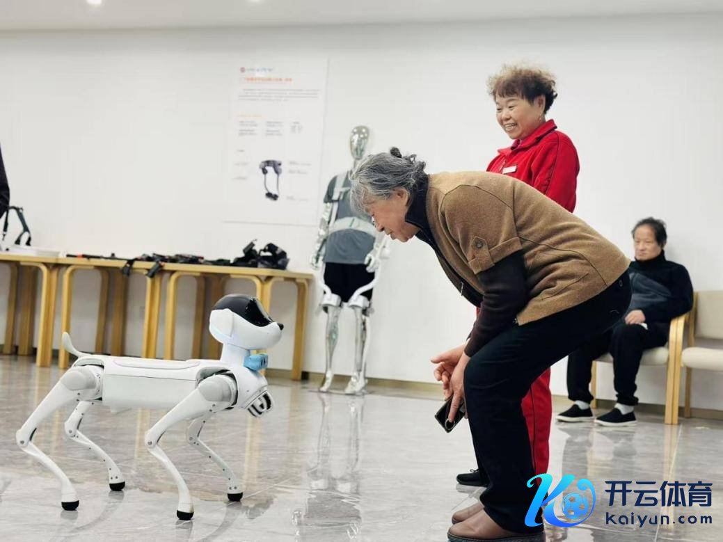 浙江乌镇智能养老中心内,院内老东谈主正与机器狗互动。新华网发(钟月英 摄)“机器东谈主能给咱们送餐、送药,替代了许多护工的职责,相配高效方便。”乌镇智能养老中心老东谈主潘鉴澄暗示。