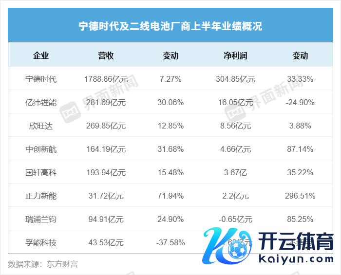 锂电板企业期中考获利单公布,二线企业上半年举座事迹同比改善,“宁王”连续一家独大。