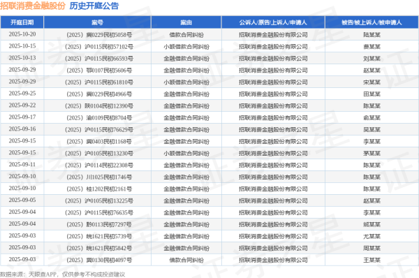 本站音问,笔据天眼查APP走漏,近日公布了一则招联失掉金融股份有限公司动作原告/上诉东说念主的开庭公告,详备推行如下: 案号:(2025)冀0435民初1618号审理法院:曲周县东说念主民法院案由:小额借钱条约纠纷当事东说念主信息:原告/上诉东说念主:招联失掉金融股份有限公司被告/被上诉东说念主:张某某开庭日历:2025年8月12日 笔据统计,近一年内以招联失掉金融股份有限公司为当事东说念主的历史开庭公告有464则,其中案由为“金融借钱条约纠纷”的公告以343则居首,其次为“借钱条约纠纷”有5